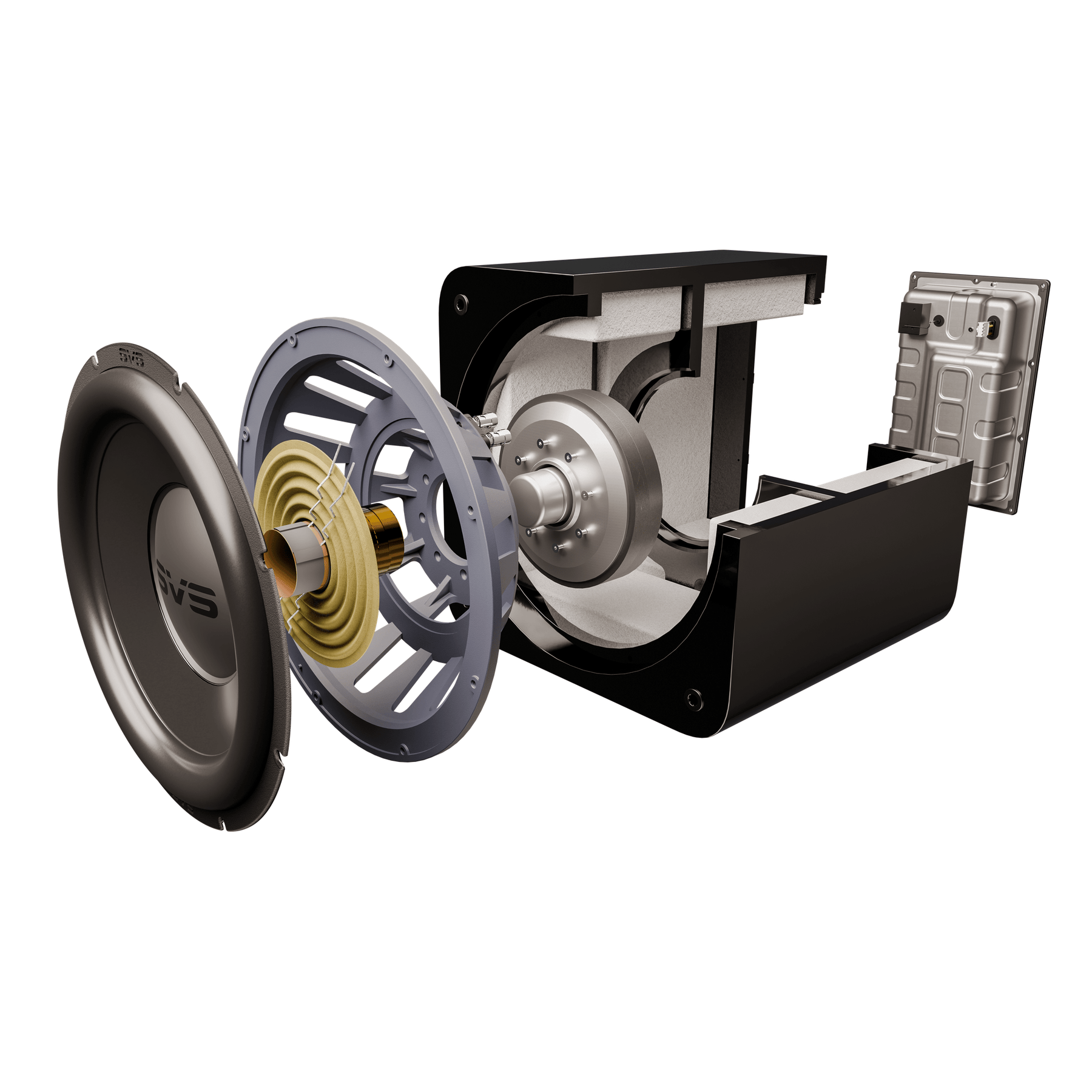 Rigid 1100 Pure Aluminium Cone is lightweight and neutral for convincing, distortion-free output, even at extreme levels. Long-Throw Extreme Excursion SBR Surround maintains ideal pistonic motion while enabling massive driver movement for clean, room-pressurising low end.